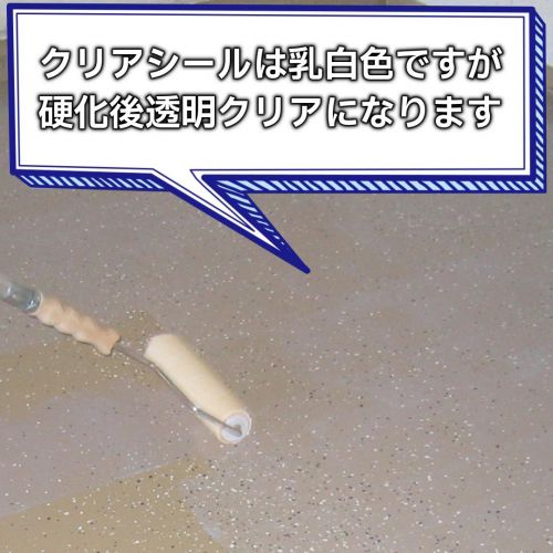 ・塗装済みのコンクリート床に上塗りもできますので、エポキシシール・コンクリートフロアペイントなどで塗装したコンクリート床の耐久性をより向上させたい場合や、艶を上げたい場合にもおすすめです。