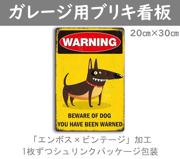愛犬家のガレージ装飾におすすめのブリキ看板です。