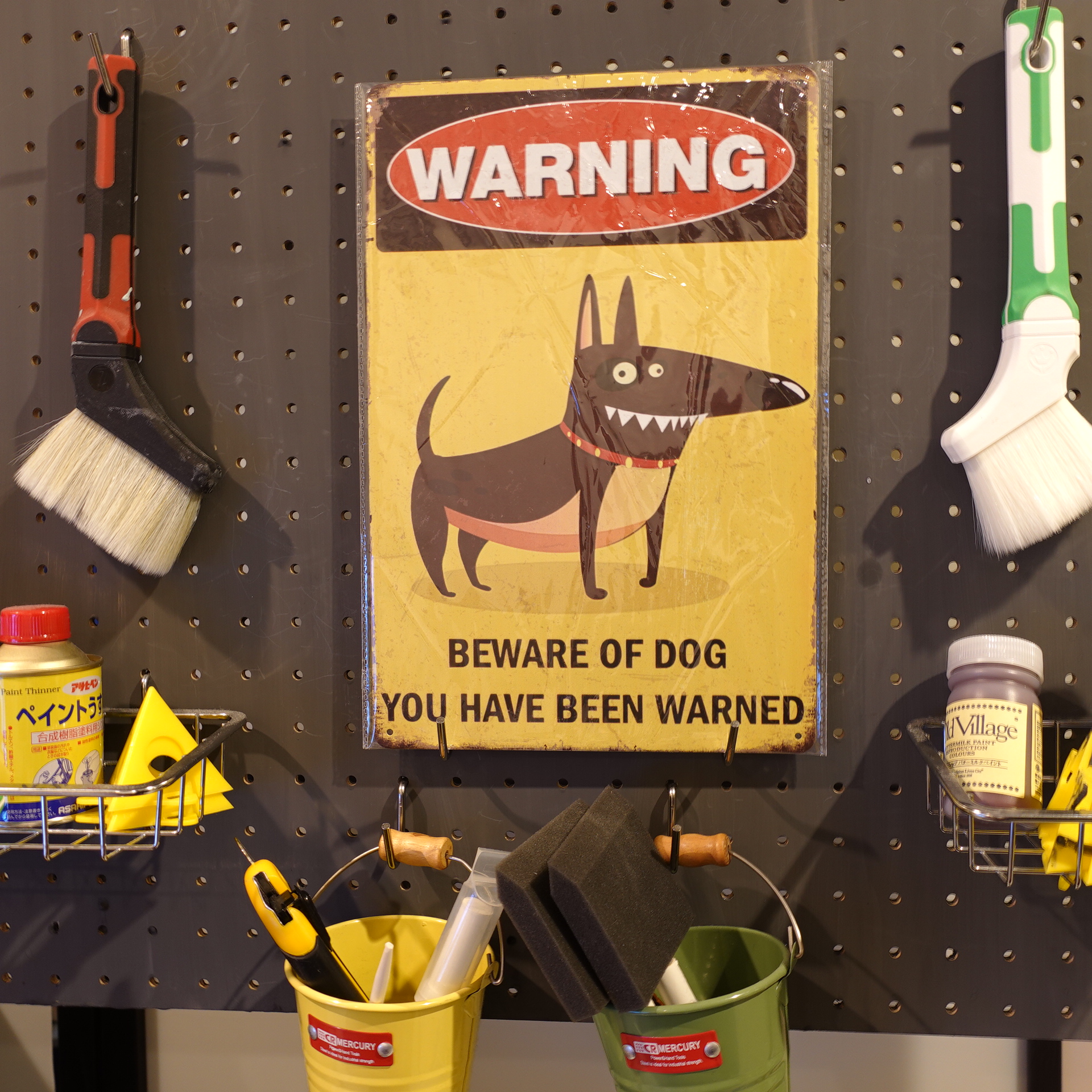 小型犬を飼われている方もこのブリキ看板を付けるとおもしろいと思います♪