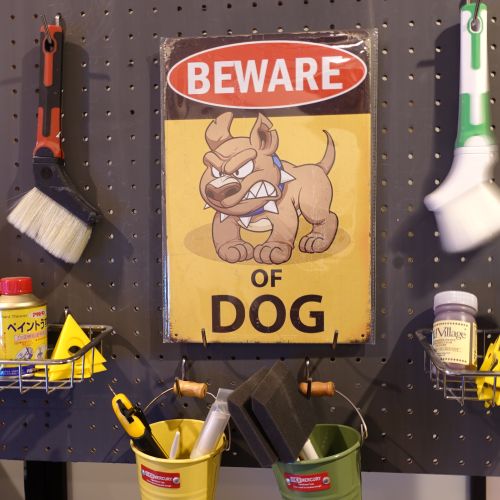 愛犬家のガレージ装飾におすすめのブリキ看板です。