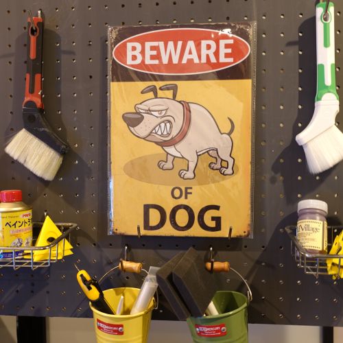 愛犬家のガレージ装飾におすすめのブリキ看板です。