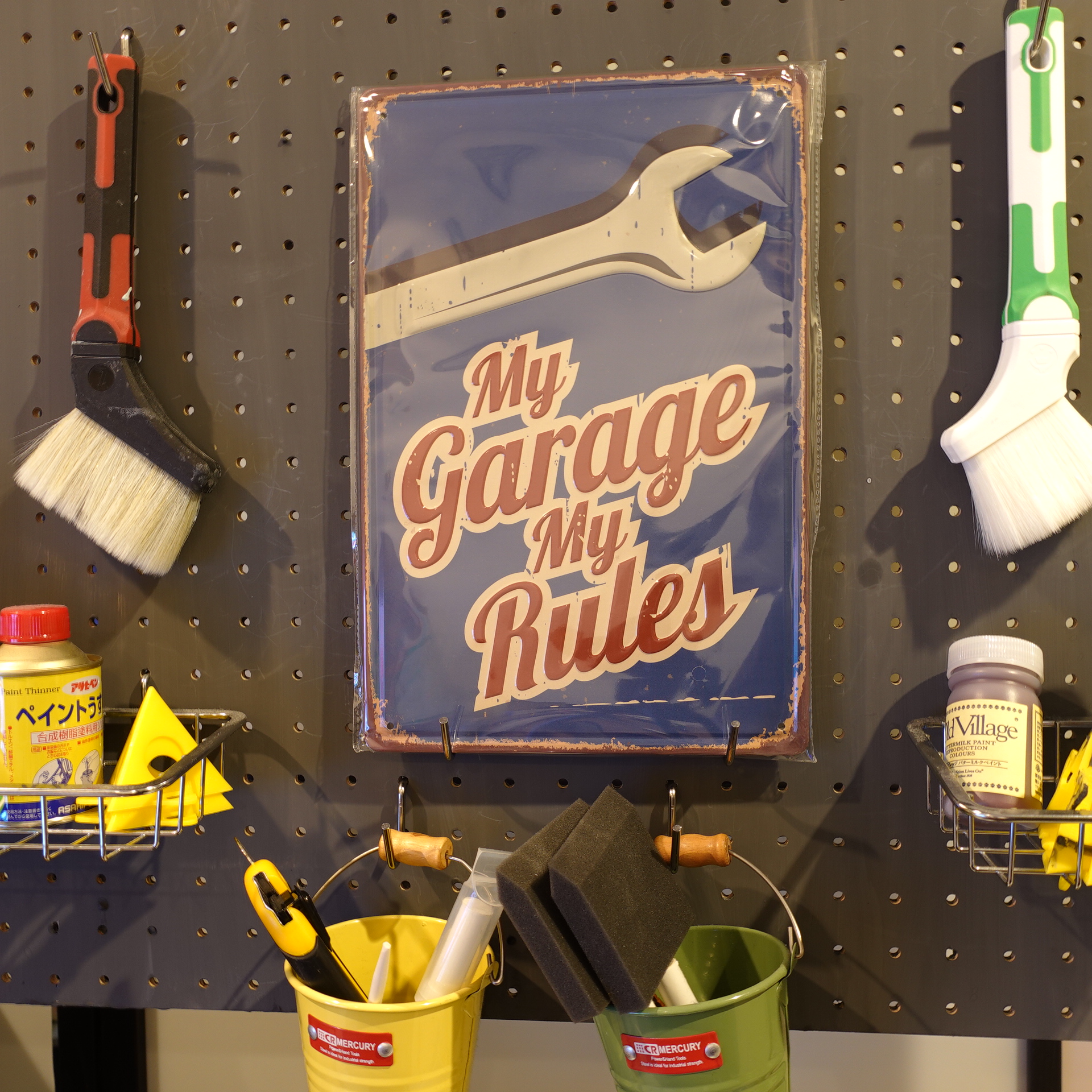 ※1種だけ「DIY」「作業ツール」をモチーフにしたブリキ看板もあります。