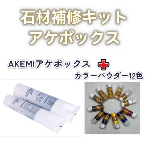 大理石などの石材、タイル、陶器用の二液エポキシ系接着剤・補修用パテとして高い評価を得ている「アケミ・アケポックス5010」と補修用パテ・接着剤の色合わせに便利な「キャラフ・カラーパウダー5㎜」をセットにしました。