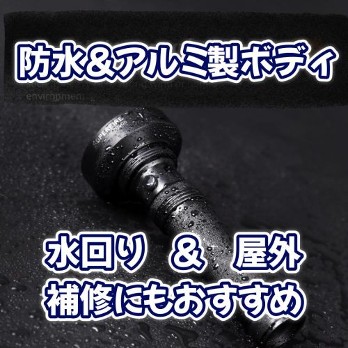 一般的な強力なUVライトに、ホームボディ仕様として高い防水性能を付与して、屋外や水回りの補修作業にも安心して使用できるようにしました。