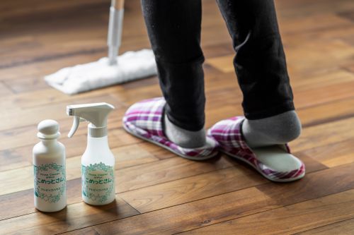 ・床にスプレーし、フローリングワイパーや布などでふき取る